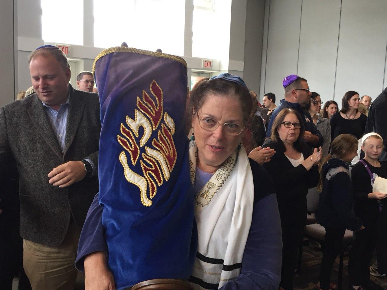 In 2015, Temple Reyim member Linda Rakoff was proud to carry the Torah at a gathering of Czech scrolls at Temple Sinai of Sharon, Massachusetts. With this web page we honor her memory.